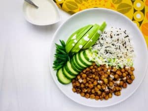 Un bol plin de sănătate: cu proteine, grăsimi sănătoase și carbohidrați care asigură 75% din totalul aportului zilnic de fibre. Dar pe lângă că e sănătos și sățios, mai este și foarte gustos, iar sosul de susan îl desăvârșește.