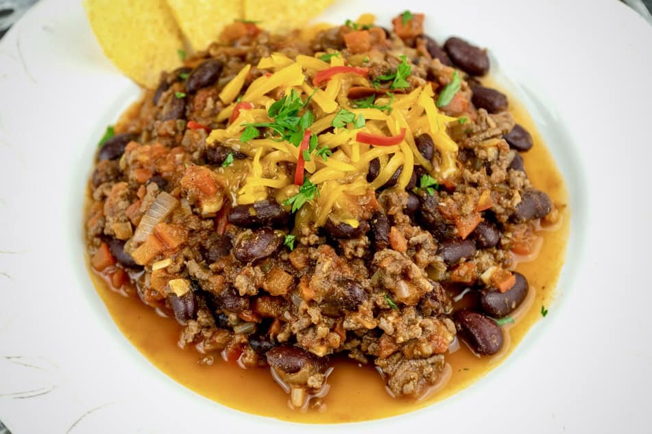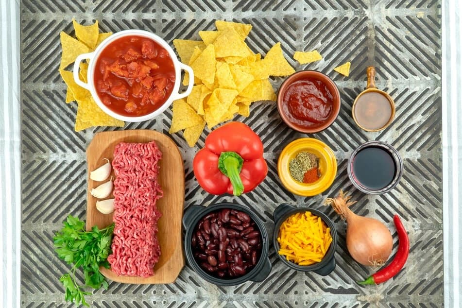 Deși rețeta diferă de la o regiune geografică la alta, după cum zice și numele, ardeii chili sunt nelipsiți. Cel mai des, se gătește cu carne tocată de vită și asta pentru că, prin anii 1500, spaniolii au dus primele văcuțe în America. 🙂