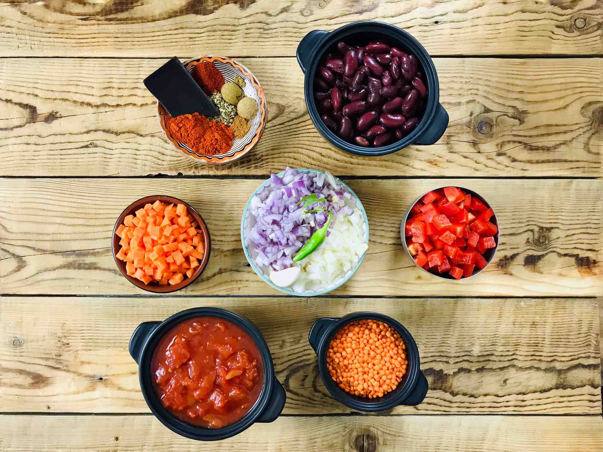 Astăzi am făcut-o cu linte și fără pic de proteină animală, dar cu toate condimentele care-i dau gustul minunat de chili. Acum, că tot am zis de condimente, cele mai importante sunt chimionul și pudra chili. Spun de chimion, pentru că tare mulți îl confundă cu chimenul – cel de pe saleuri și cornulețe -, care are cu totul alt gust. Așa că, dacă nu aveți, luați-vă chimion. Vă va fi de folos în aproape toate preparatele mexicane și persane.