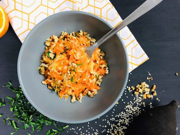 Revenind la salata cu ridichi și morcovi, să știi că poți folosi și ghimbir pudră, dacă nu ai rădăcini prin casă. Cam 1/4 de linguriță e de ajuns. Iar ca să fie și mai sănătoasă și, zic eu, și mai delicioasă, îi poți adauga nuci/alune/semințe de susan. Mi se pare o că completează tare bine. 😉
