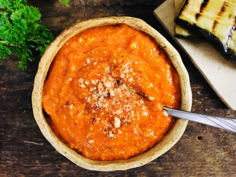 Gustul lui este absolut minunat și de neuitat. Predomină aroma ardeilor copți și a migdalelor, este dulceag, ușor astringent. Iar pentru aventurieri, poate fi și picant dacă i se adaugă un ardei iute copt sau fulgi chili.