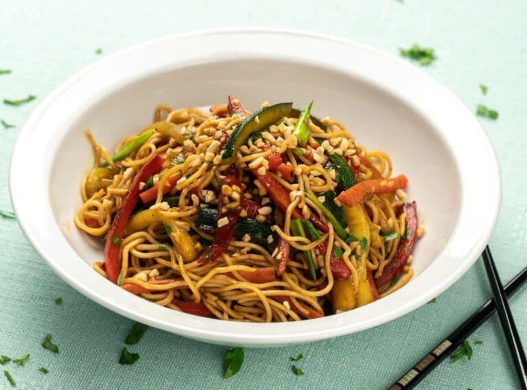 O rețetă vegană făcută la wok, cu tăiței, zucchini, ardei, morcovi, ceapă și arahide. Și, bineînțeles, un sos dulceag-sărat-acrișor-ușor picant. Ca la fiecare mâncare stir fry, prima dată vom pregăti ingredientele, căci odată ce aprindem focul, totul trebuie să meargă super rapid.