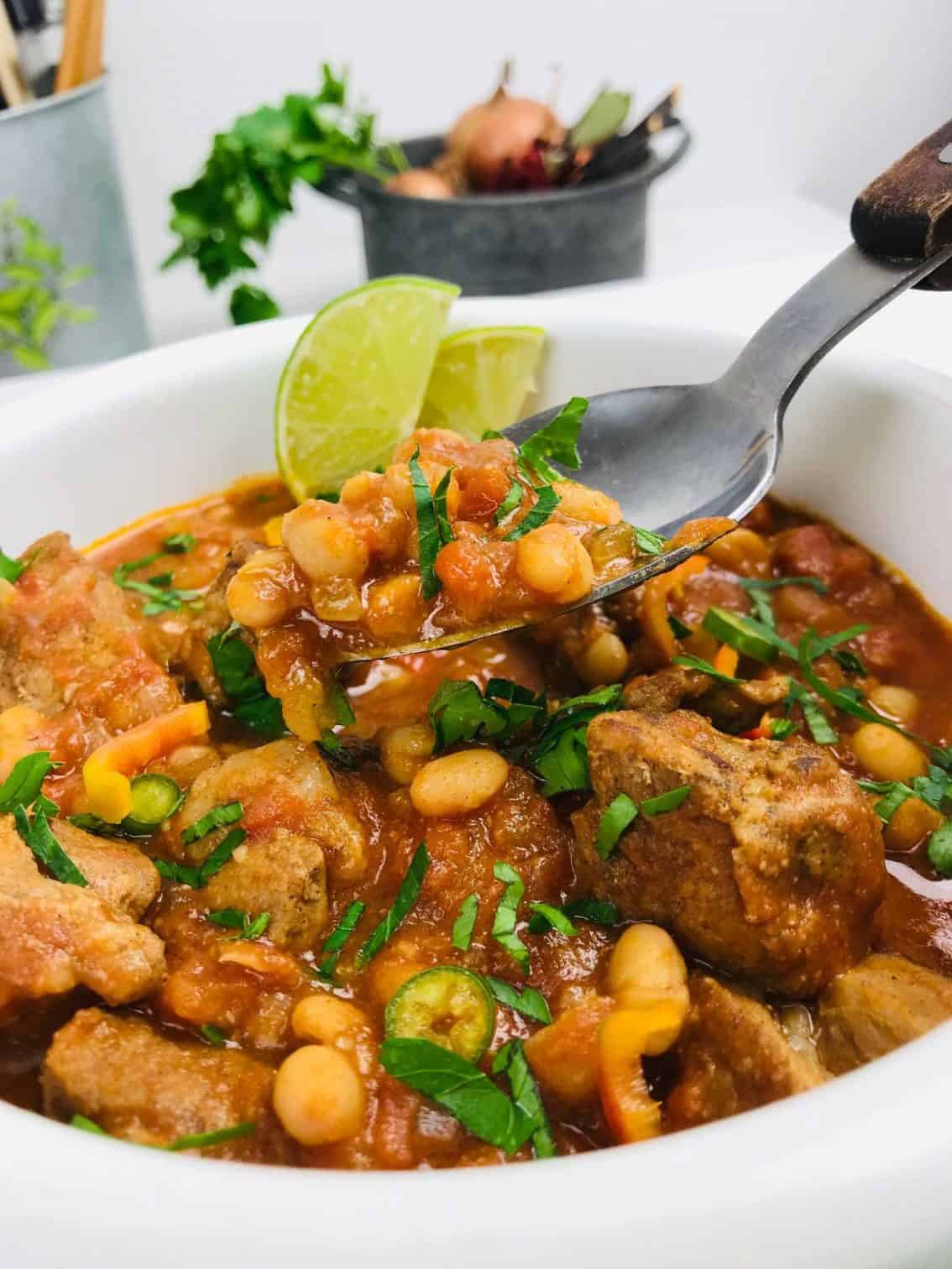 O mâncare țărănească, dar nu de la Rădeana, ci taman din El Riachuelo. 😀 Tocăniță de porc în stil mexican – care merge la fel de bine și cu vită – se mănâncă cu pâine proaspătă, tortilla sau nachos de porumb. În mod normal, e o mâncare foarte picantă, dar voi o puteți face cu sau fără ardei iute.