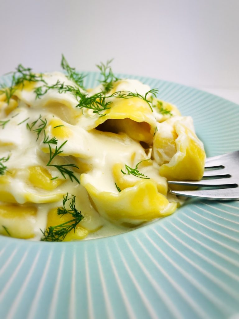 O rețetă delicioasă, super rapidă și cu puține ingrediente, pe care o poate face oricine. Tortellini umpluți cu brânză și scăldați în sos cremos de smântână. Ce poate fi mai bun?