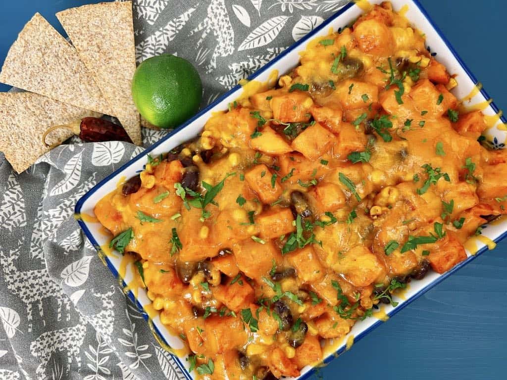 Ca tot mexicanul, am făcut o caserolă la cuptor cu porumb, fasole, cartofi dulci, cheddar și un sos salsa făcut de mine. E o rețetă simplă și gustoasă, mai ales dacă sunteți fani mâncare mexicană. Pe lângă legumele și brânză cheddar, m-am folosit și câteva foi de tortilla, că pâinea…