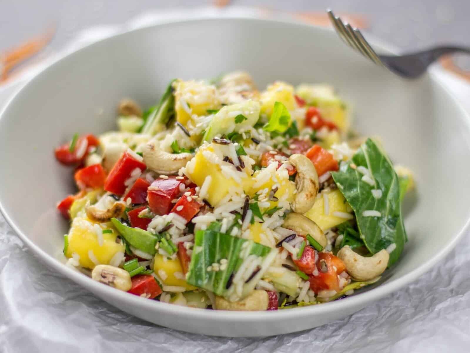 O salată vegană de inspirație mexicană, cu fasole neagră, porumb dulce, mango, verdețuri și orez sălbatic. Adicătelea și sănătoasă, și delicioasă. La verdețuri am pus ceapă verde, pătrunjel și salată de valeriană. Dar pe cea din urmă voi o puteți înlocui cu spanac baby sau elimina di tăt. Numai nu…